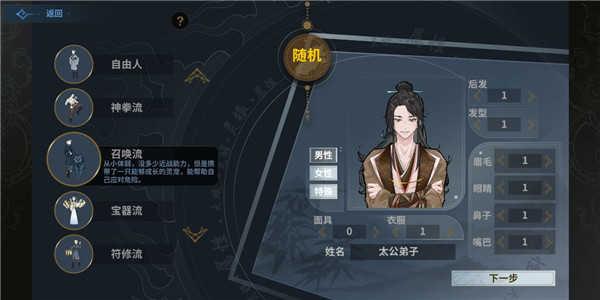 2、首先选择并创建属于自己的角色和属性,点击下一步