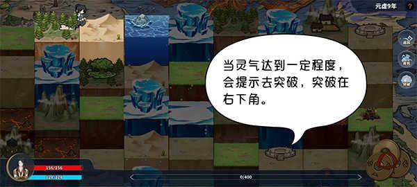 3、境界突破:当灵气达到一定程度,会提示去突破,突破在地图右下角。