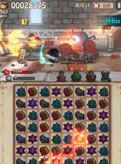 透过三消规则,进行连击、防御、回复并施展技能,充分体验横版动作游戏的乐趣。