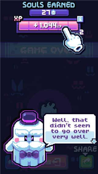 3、完成一个阶段后,玩家可以从一组随机的糖果和诅咒中进行选择,这些诅咒和诅咒将为该游戏的其余部分提供永久的权力奖励。你是否会恢复所有希望在不合时宜的死亡之前持续更久的心?或者你会为最终的力量牺牲防御?这是你的选择!