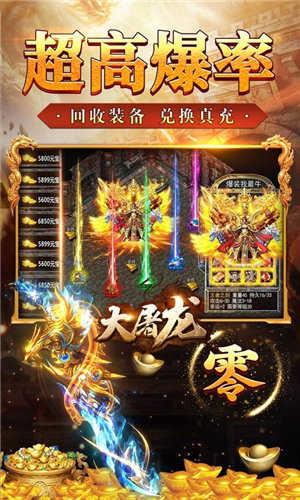 大屠龙独家爆真充是一款全新单职业的传奇游戏,开局就送超多新手福利!首充赠送超强属性-隐身buff的武器!超高爆率!极品装备掉满地!全新boss地图,boss无限刷!装备无限爆!