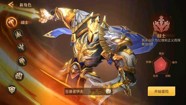 5、小编这里以“战士”为例,选择后编辑昵称,点“开始冒险”;
