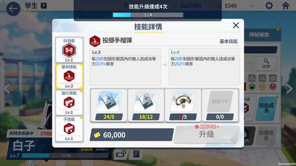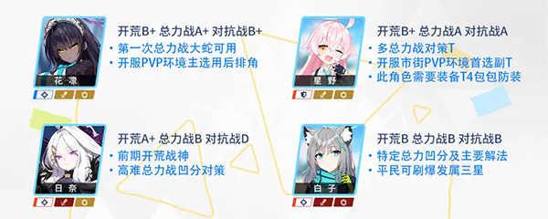 3、在基本的战略操作以外,也要考量学生对于战斗场地的适应性、使用的枪枝火力与敌方防御克制,根据关卡种类配置队伍。角色的等级随着玩家等级而提升上限,平时则需要准备装备与技能的提升才能配养学生更为强大。