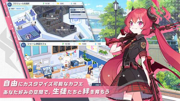 6、好感度的提升途径主要是课程表与咖啡厅,随着收录的学生种类越多,课程表前往的区域也会扩增,完成课程表可提升与学生的羁绊值、或者是在咖啡厅解锁后以送礼的方式提升羁绊值,咖啡馆与课程表的学生种类将会定时更换,但只有咖啡厅有额外一次可邀请特定学生前来的机会,对于喜爱的学生就努力培养羁绊等级,好处多多。