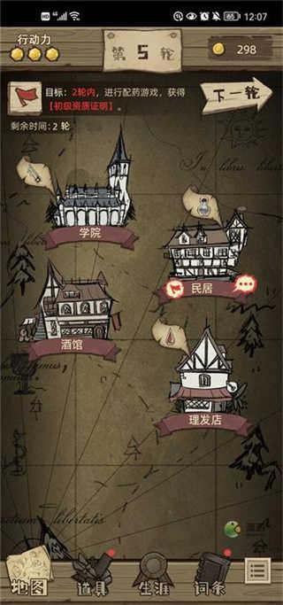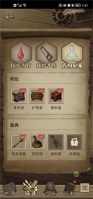2、首先是地图,理发店、民居、学院、酒馆,分别对应放血治疗、药品配置、截肢手术和人际交互。如果地图上没有,就是剧情还没推进,推进后解锁;