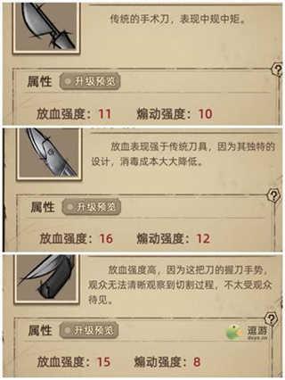 4、流程:双倍金币++最高费用患者+黄锯/弯锯+满观众+无麻醉+烙铁,死了就祷告,一个市民/官员下来价格少说1000,2000都有,拿来的钱再去升级其他装备或者解锁剧情,达到钱生钱的效果。