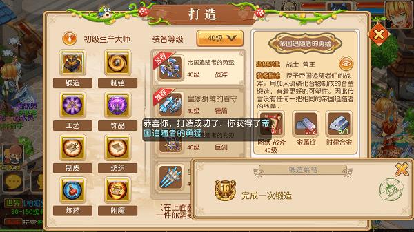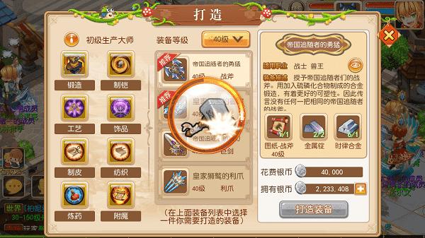 当游戏等级达到30级就可以开启打造系统。每个职业都可以打造全职业的装备。打造装备需要消耗指定的材料和一定数量的银币,打造装备是随机品质,装备的基础属性会在某个区间内浮动,并且会随机出现附加属性。