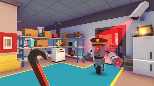 7、在偷窃的过程中玩家还需要小心躲避摄像头和机器警察,如果被警察发现后,你将会被抓紧监狱