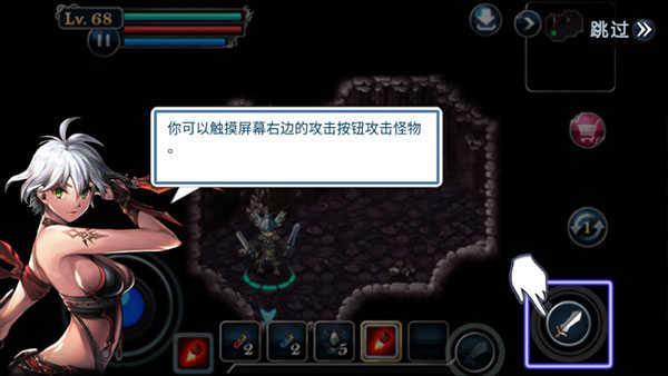 2、您可以触摸屏幕右边的攻击按钮攻击怪物;
