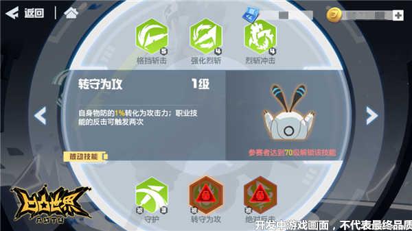 对1个敌方单位进行普通攻击,本回合可进行一次反击。与被动技能“转守为攻”配合,反击将得到加强。