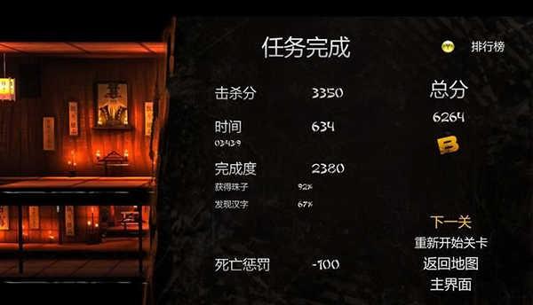 5、最后,玩家会来到一个巨大的红色龙纹位置,这就是通关位置,接近龙纹就会通关了,通关后就是显示评价。,用时越少杀怪越多,获得珠子和黑字越全,得分越高。再扣除死亡罚分就是总评价分了,不过都可以反复挑战,关卡结构和怪物位置会很快摸清,得A也不是难事,看你的了。