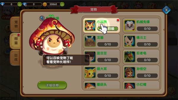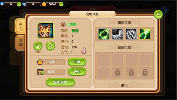 点击宠物详细信息可以对宠物进行升级、进化操作喔;