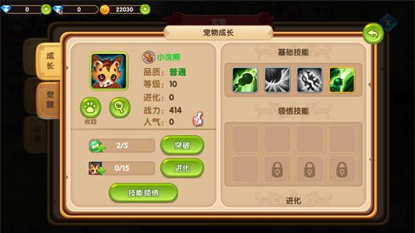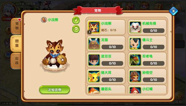 宠物升级也是只需要金币的噢,升级到一定阶段需要突破丹突破瓶颈才可以继续升级喔;进化需要消耗宠物碎片噢,进化等级越高宠物战斗力就越强喔;每个宠物都是小伙伴们战斗的最大助力,一定要好好培养噢