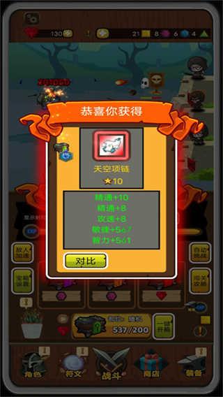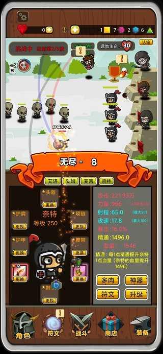 现在说一说战斗系统,每九级经验满,红色小旗会出现感叹号,提示你可以挑战加强关卡,有三波加强生物,赢了可以开启下一张地图,打不过就继续打原来的关卡,每过一关给一点多肉植物点,这个属性可以给英雄加攻击暴击攻速射程精通属性,打赢了解锁下一张地图跟更强大的套装,原来关卡的除神器外的装备全部回收,红色套装按原来关卡返还红宝石。