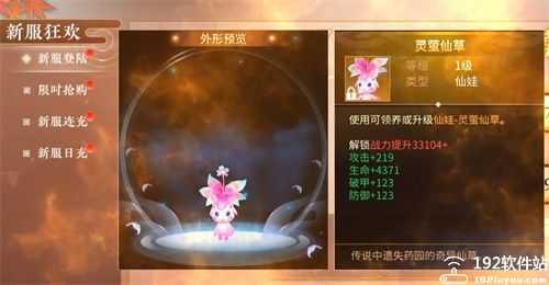 2、一定要选择新服,可以领取灵萤仙草宠物,加超高战力;
