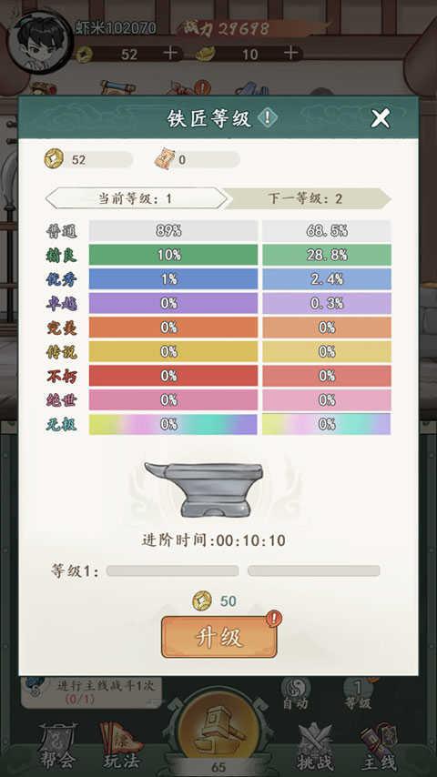 2、记得优先升级铁匠等级,可以让玩家变得更加强大。