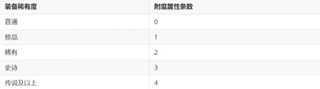 附魔属性:附魔属性的条数和装备品质有关。可以在锻造台进行附魔。附魔属性有5种品质:普通(白色)<极品(绿色)<稀有(蓝色)<史诗(紫色)<传说(橙色)。不同部位能通过附魔得到的属性不同,具体可以在游戏中的附魔界面点击右上角蓝色按钮查看。