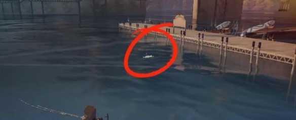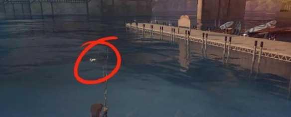 4、 鱼在水面会左右游动,我们可用A和D以控制鱼竿尽量和水花保持一条直线,这样的话就可以让鱼的情绪值变低;