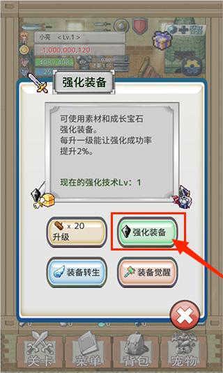 2、强化装备分为升级、强化装备属性、装备转生以及装备觉醒。