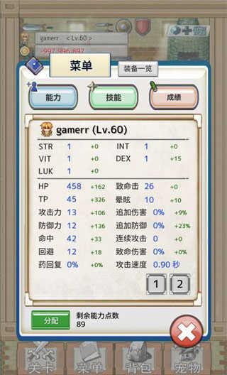 2、【防御】防御可以减伤,但有减伤上限,后面怪物攻击力太高,所以防御不能太低。