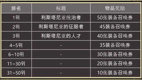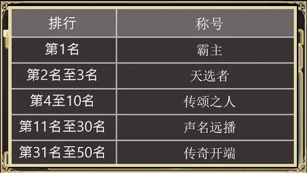 5、每周一早上6点计算战力排名称号奖励。 玩家获得的称号,可以一直使用到下赛季排名奖励结算。