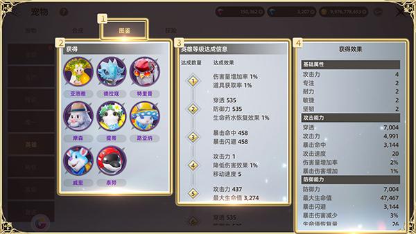 2、获得宠物可以解锁图鉴增益,效果将取决于该品质的宠物数量。