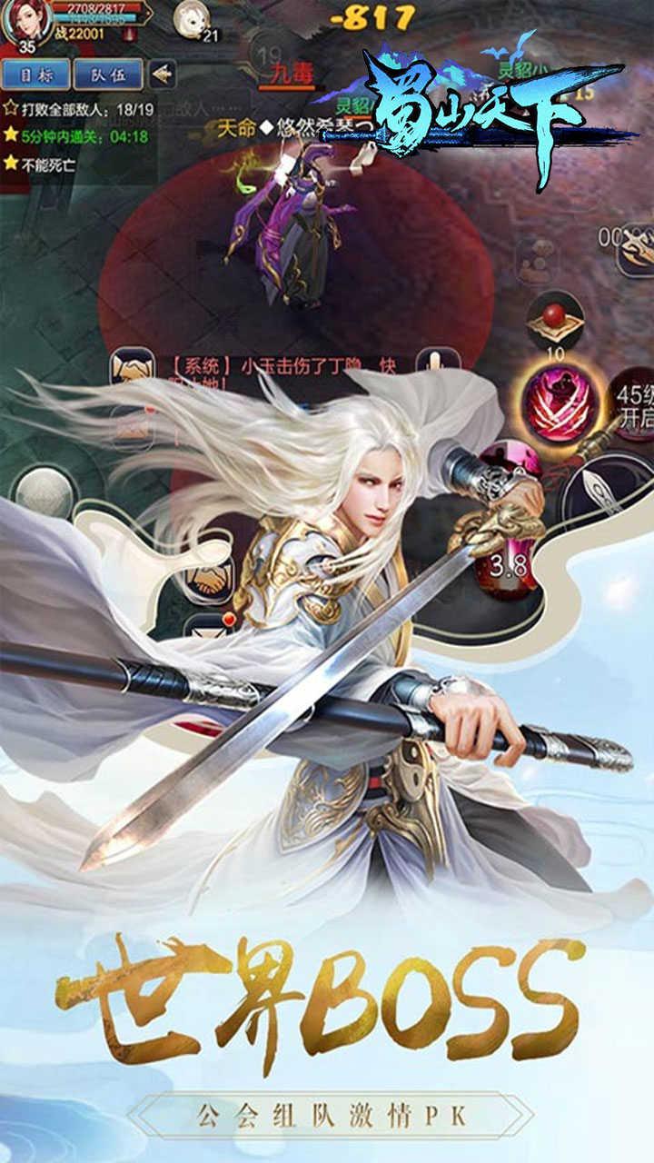 蜀山天下是一款超级好玩的修仙游戏,深受玩家的欢迎。在蜀山天下游戏中顶级画面,绚丽技能,千人血战,万人BOSS。等你来战。江山依旧在,仙侠永流传,非常的不错,感兴趣的朋友不要错过咯。