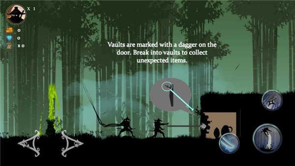 1、忍者可以进行二连跳、使用手里剑攻击敌人、使用拔刀斩穿过敌人并立刻杀死他们。