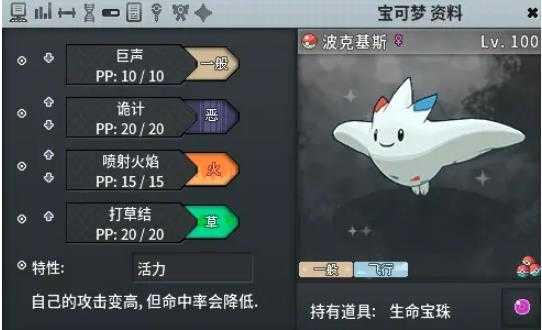 道具:生命宝珠,用了一段时间,真的感觉比博识眼镜好用。命玉保证了波克基斯的伤害,虽然会掉血,但是可以保证一回合配合队友秒杀对方,比如岩崩+巨声打暴鲤龙,命玉就一定能打死,而博识眼镜就不一定。
