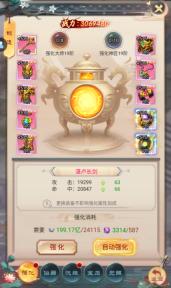 锾造系统融合了装备、仙器、宝石系统,玩家可通过强化装备、洗练属性、镶嵌宝石等提升各个装备的属性结成,每个系统都有对应的免费获取相应盗源的途径,是所有玩家提升战力的不二选择。
