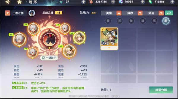 每个魂灵最多可装配6个魂环,每个魂环均提供属性加成。同属一个套装的魂环还可凑成套装效果。