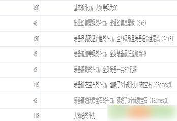 6)装备镶嵌宝石战斗力:装备上的孔洞如果镶嵌了战斗力增加的宝石,那么装备镶嵌宝石战斗力就为相应数值。此外如果镶嵌的是高级宝石,那么装备镶嵌宝石战斗力还会根据高级宝石的数量相应增加。如果镶嵌2个战斗力+5的宝石,战斗力就将提升12点。