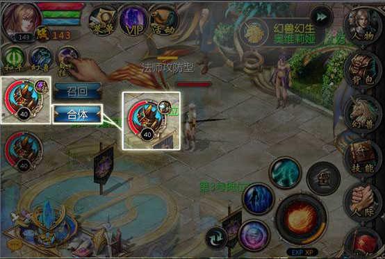 合体就是指幻兽宝宝将和你的角色融合为一体,它的攻击和防御将部分加成于你的角色身上,并且当你遭受袭击的时候,幻兽将先于你承受敌人的攻击。