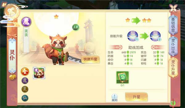 玩家通过主线任务和副本挑战获取升星材料,给灵仆升星后可在战斗中帮助玩家助战加成,提高生命力、攻击力、防御力等,灵仆升星后可大大提升灵仆属性,灵仆主动技能也会提升等级。