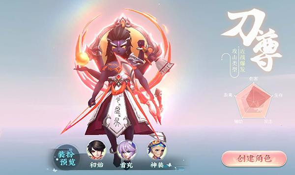 4、刀尊:男性角色,擅长近战攻击、爆发,这个职业同样对于爱好战斗的玩家来说也是一个不错的选择