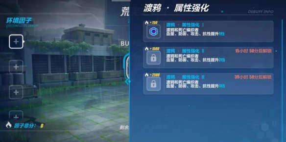 「环境因子」会随着时间逐步解锁新的效果。选择的环境因子效果越强,通关所后获得的关卡积分也越高。在达到一定的关卡积分后,还可以获得金徽纪念物、苦难晶核、星石等奖励。