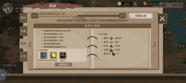 嘿嘿,充值这里不详细描述,游戏里面可以看到。反正VIP等级越高,特权越好。另外说一下,任意充值都计入VIP等级积分,所以买各种礼包是最划算的。