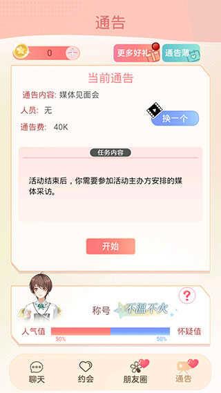 6、通告则是为玩家们提供了一些额外的任务,完成之后可以获得一定的人气值以及其他资源奖励。