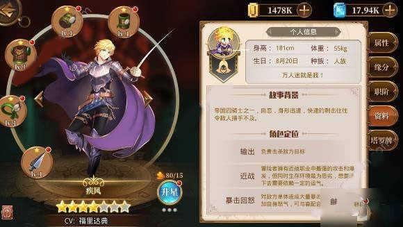 疾风――帝国四骑士之一、外表出色,有点自恋,自诩“万人迷