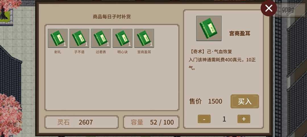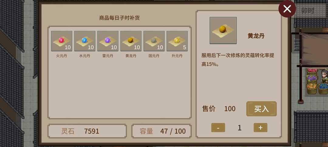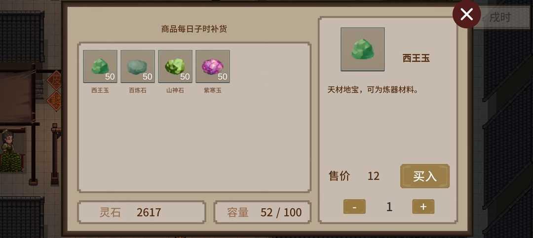 (商店的材料在游戏时间的子时(1点)补充),一天下来能赚300灵石