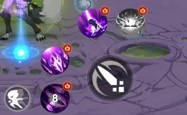 在战斗时各位灵师大大需要关注战斗界面右侧的技能释放区域,每个技能右上角都会有一个标记