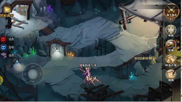 当每次挑战挑战矿洞需要消耗24点体力,首次通关可以获得额外奖励,点击“探索”后进入坑道玩法界面。通过左下角滑轮,进行左右上下移动来移动角色,当移动时候会遇到以下小怪代表着事件的触发,用户只要移动到对应格子即触发事件。当完成事件后会获得对应的奖励。在规定内回合完成数内达成成就,可以获得额外奖励。其中矿洞内会有概率刷新特殊bUFF拾取后会降低挑战难度。对应BOSS位于矿洞二层,当到达了开始挑战后可以挑战相关BOSS。挑战完成所有事件,宝箱,怪物,BOSS后会自动结算。
