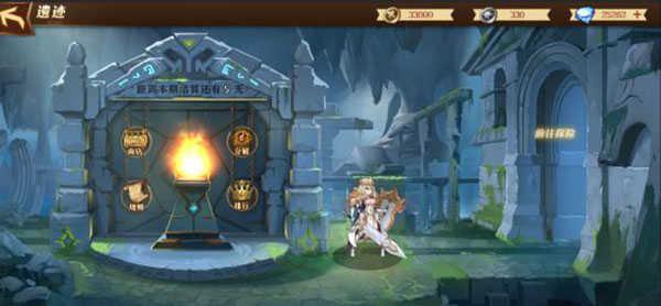 当进入遗迹界面,分别看到4个图标分别是商店,分解,规则,排行等,以及右边遗迹探险入口。