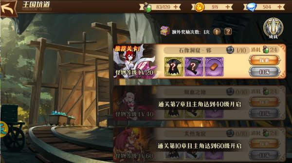 当通过主线关卡2-3结束后会触发对应新手指引玩家去开启国王坑道玩法。可以通过点击主界面下野外按钮会跳转到对应的活动页面,可以点选国王坑道进入玩法活动内。每个等级的关卡是和角色等级和主线关卡挂钩,当到达对应等级后会自动解锁。