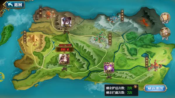 讲解下其中商队护送玩法,为公会系统丰富日常玩法,增加玩家与公会的互动趣味,提高玩家活跃,我们设计在一张地图上,玩家可选择一个目的地进行短时间的护送,只要将队伍护送到终点即可获得奖励,并且在护送过程中,可以被其他玩家进行拦截。随着公会系统开启而解锁每天可护送3次,拦截3次,玩法分别在中午13点和晚上7点各开启一次,开放时长约1小时,每日0点刷新次数