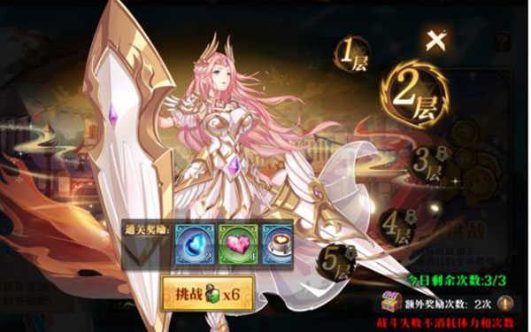 其中每个副本中包含了5层,层数越高,获得奖励奖励越高,在打败前一个层级BOSS后,便可以扫荡功能,并解锁下一关卡挑战资格,在战斗过程中失败情况下,不会消耗提了和次数,所以可以尽情的尝试。