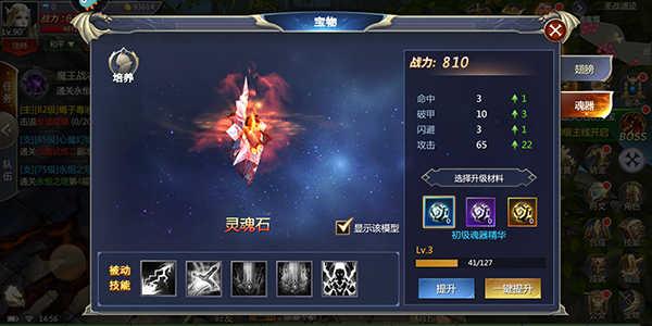 魂器:同样可为玩家在战斗时提供技能辅助!其升级材料需要:魂器精华;获取途径:地狱战场,天梯赛,及商城购买!