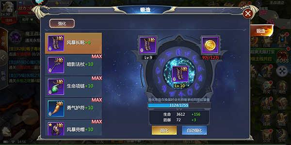 每件装备获取后,玩家可对其进行强化升级,且强化的等级会在换装的时候无损继承给同部位装备,无须担心浪费资源