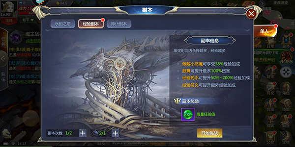 2、经验副本:玩家可通过这个副本获得经验,提升等级!