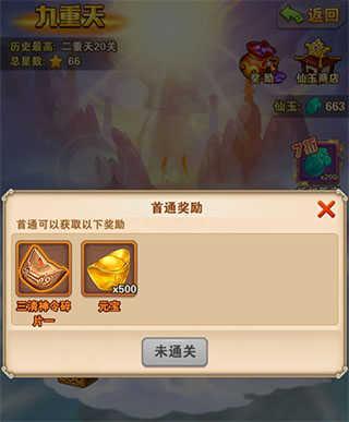 ③每一重天在首次通关后都可以开启一个大宝箱哦,可以开出橙色的宝物碎片呢!
